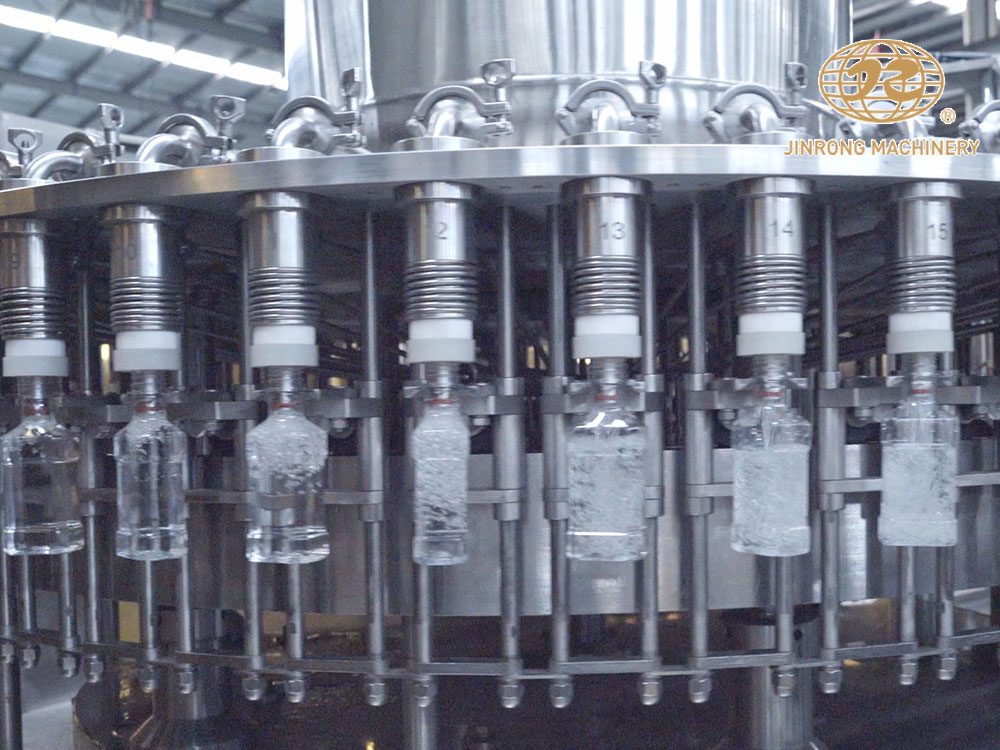 金榮飲料機械廠家制造供應的全套飲料生產線、果汁生產線、碳酸飲料生產線、小瓶礦泉水灌裝設備、大瓶水生產線、桶裝水生產線、純凈水灌裝機設備、瓶裝礦泉水灌裝生產線、易拉罐啤酒灌裝機等系列產品主要運用在純凈水,礦泉水,果汁,茶,熱灌裝飲料,功能飲料,含汽飲料,碳酸飲料,啤酒等液體飲料灌裝生產。其供應的灌裝生產線可配套全自動吹瓶機、水處理設備、前處理設備、飲料殺菌設備、貼標機、包裝機等相關配套機械設備。金榮多年來的設備研發(fā)和制造經驗,讓金榮機械為飲料生產企業(yè)和水廠等提供了穩(wěn)定的全套灌裝生產線設備。